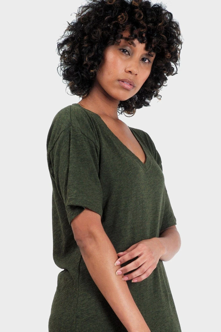 A textured t-shirt dress with a relaxed fit and v-neck. Perfect for a day on-the-go or lounging around in style. Silky-soft, breezy and breathable.