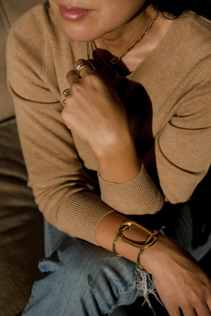 Simplicity meets statement with this Crossover Cuff. Woven and organically shaped brass adds something special to your outfit. Wear it casual or with your holiday best.
