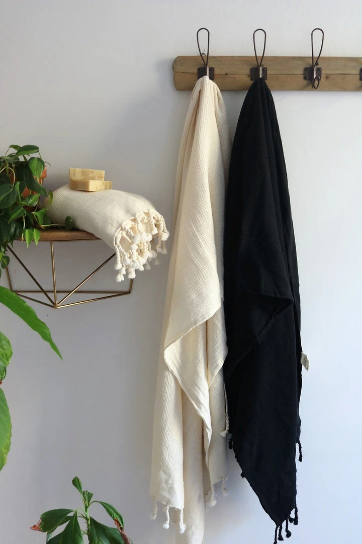 The Waffle Weave Turkish Towel is the most absorbent and luxurious towel you can find. Made with Turkish cotton, it is lightweight and quick-drying, making it ideal for humid environments. It is hand-loomed by local artisans in Turkey using the best Turkish cotton, following the authentic traditional technique.