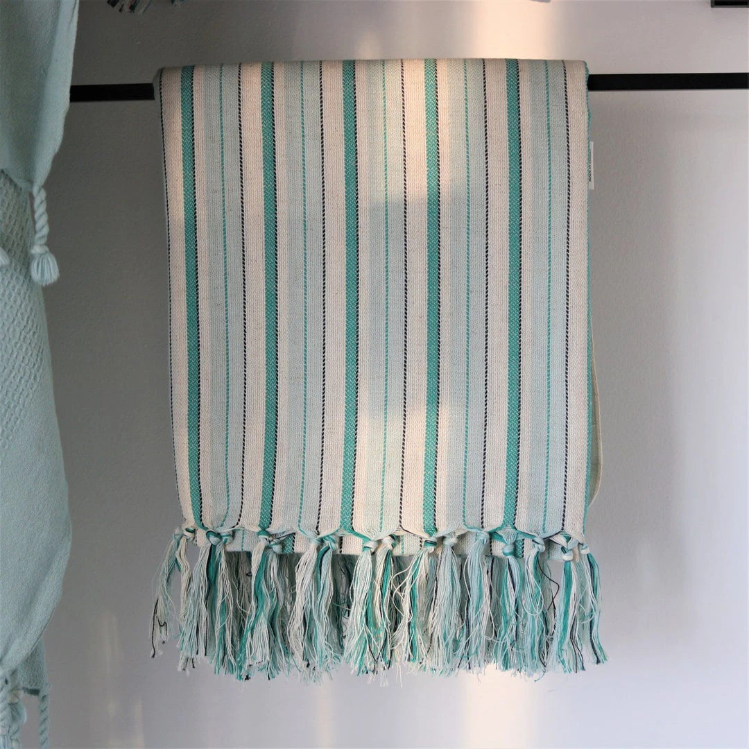 The calm, blue-green Sky Turkish Towel is lightweight, absorbent, and quick-drying, making it versatile in use – bath towel, beach towel, scarf, picnic blanket. The hand towel size makes an excellent kitchen or dish towel. Turkish towels (or peshtemals) have been used for centuries in hammams, the traditional Turkish baths, where bathing is a slow, relaxing ritual rather than a quick, daily need.