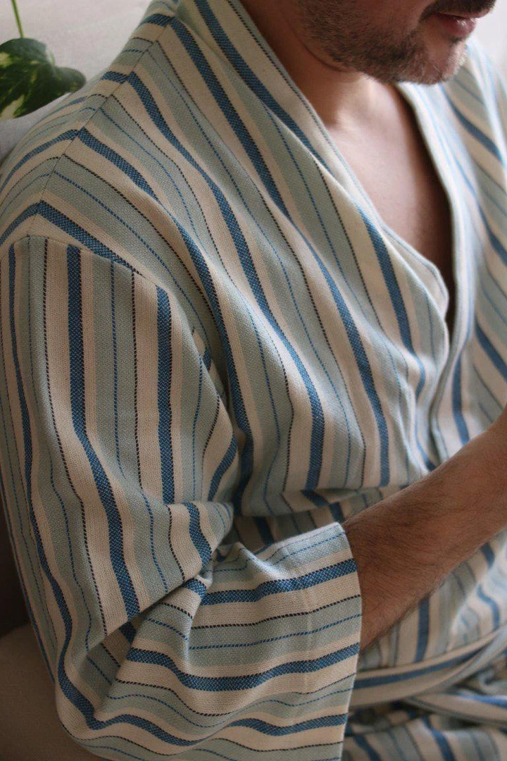 The Sky Turkish Robe is made from lightweight and fast-drying Turkish cotton. Each robe is hand-loomed by local artisans in Turkey using the best Turkish cotton and following the authentic traditional technique.