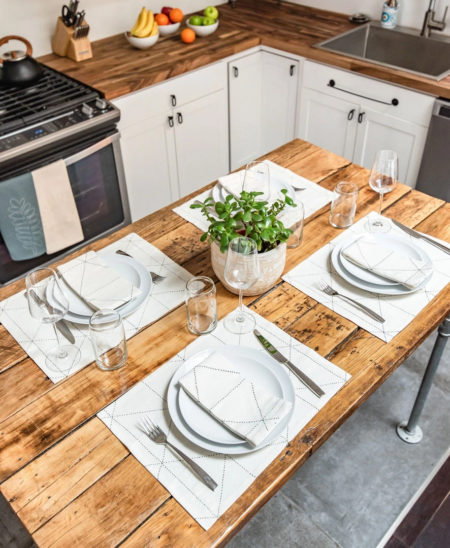 Refresh your dining space with these contemporary placemats featuring a charming grid-inspired geometric pattern. Made from durable organic cotton canvas, Anchal’s Graph placemats are sure to elevate your every day or celebratory tablescape.
