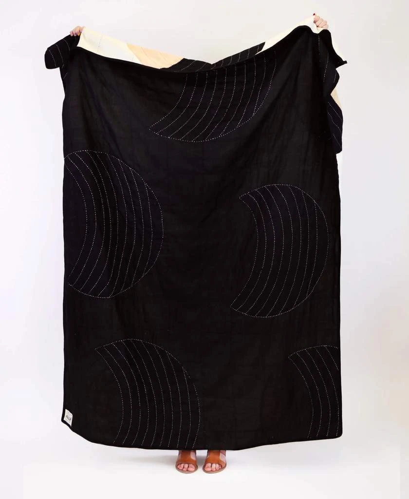 This organic cotton throw will add an artistic modern look draped over any sofa or bed. Every purchase of an Anchal product has an immediate impact and provides an artisan with a full-time job, health care benefits, design training, and educational workshops.