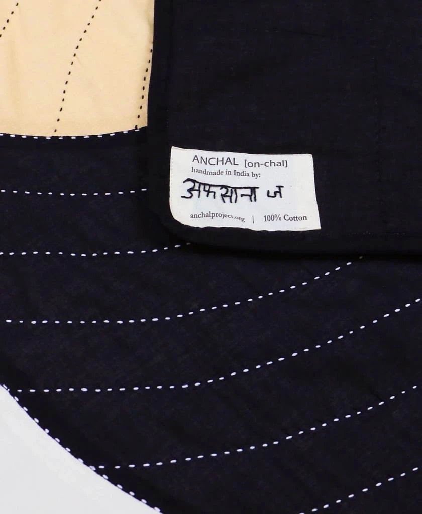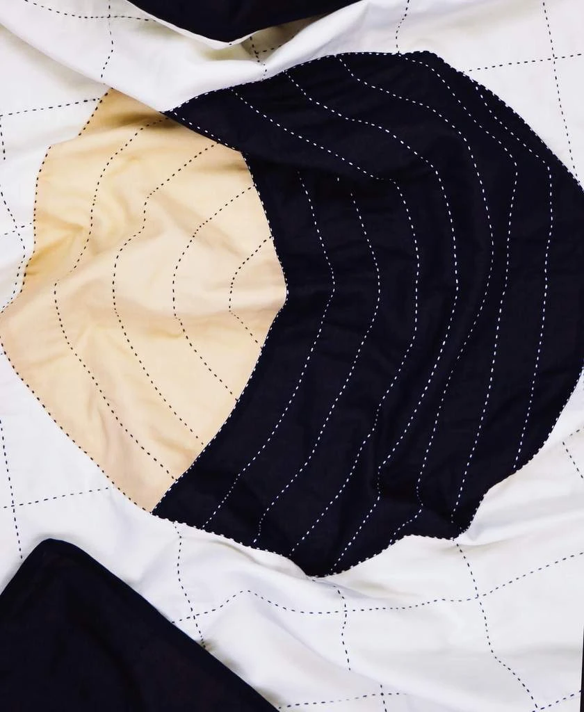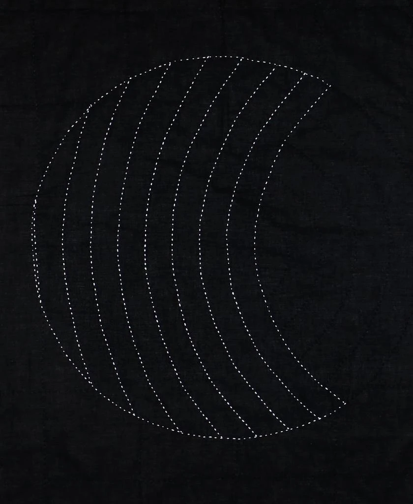 Featuring a hand-stitched circular geometric composition with a timeless color palette, this small organic cotton quilt is sure to make a statement in any room. Place in the nursery as a contemporary baby blanket, on the sofa as a lap blanket or hang as a wall tapestry and let this beautiful piece of handmade textile art speak for itself.