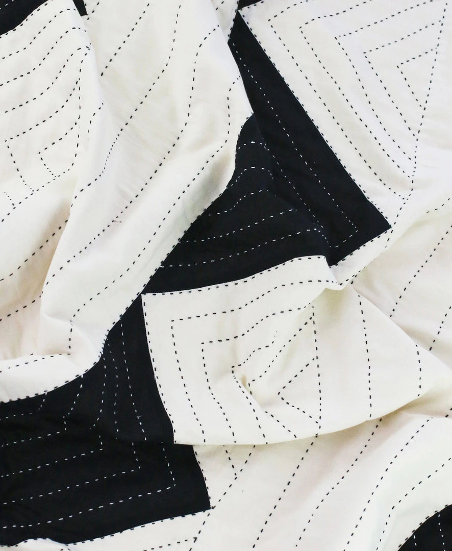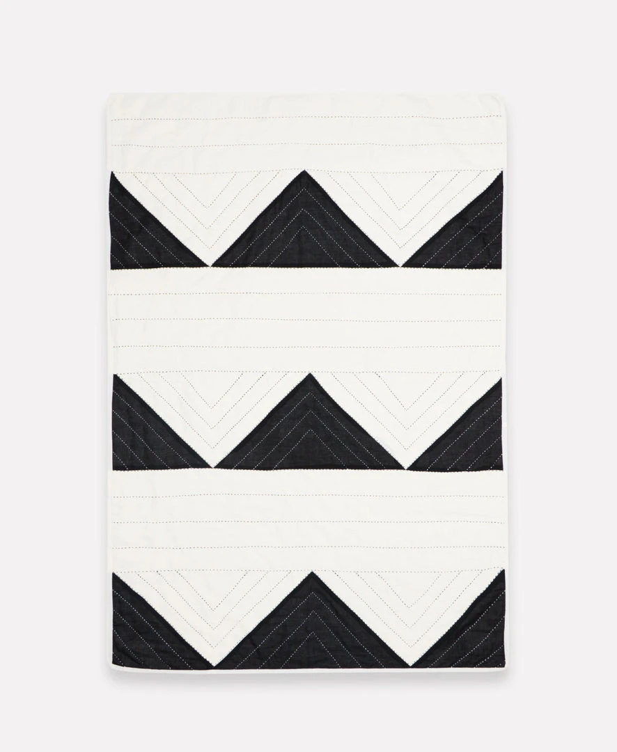 Introduce a feel of modern luxury to your home with the triangle quilted throw in charcoal black. Showcasing the talent of the artisans, the geometric hand stitching lends texture and personality to this statement quilt. Take your home decor to the next level by adding this hand quilted blanket to your bedroom, guest room or living space. The small version is perfect for nurseries and use as a wall hanging.