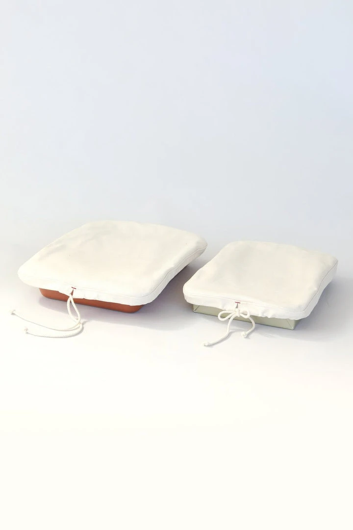 Designed for zero-waste kitchens, these unique rectangle cotton covers are a sustainable solution to covering casseroles and pans. The easy drawstring closure eliminates toxic elastic bands and provides a more secure fit.
