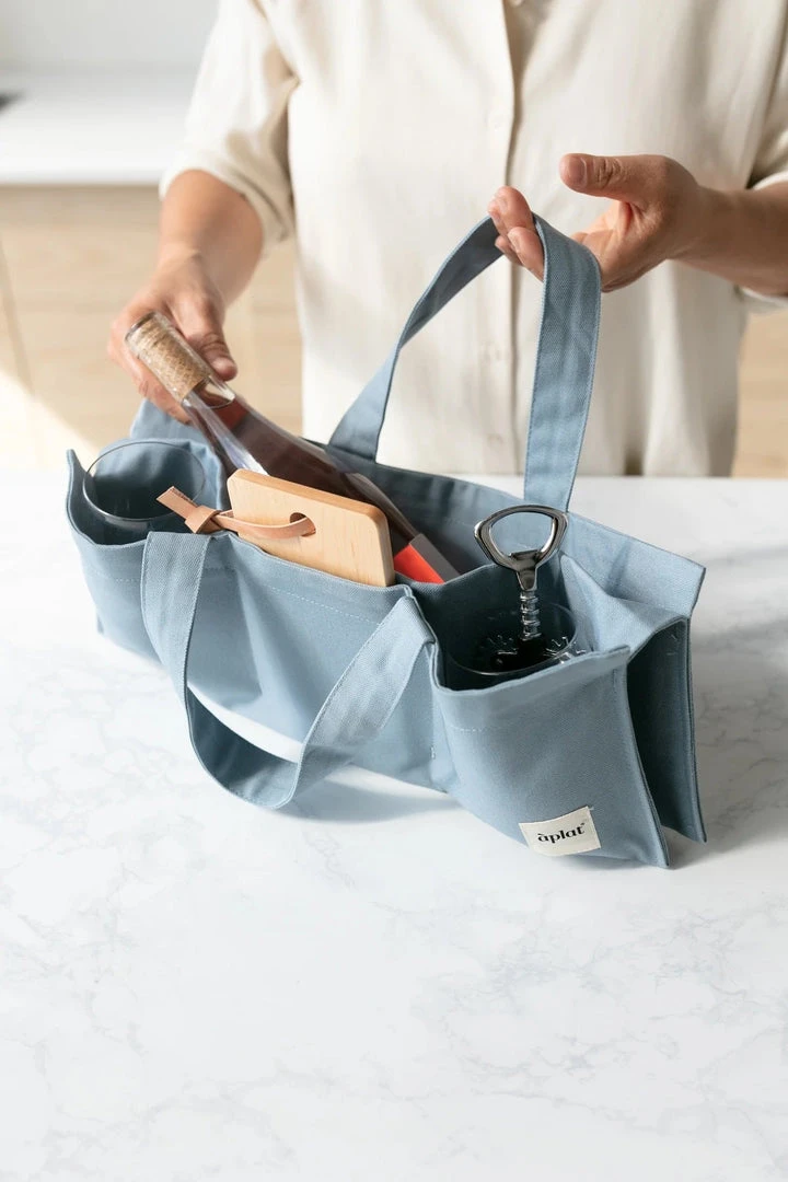 The Vin Picnic Tote is a great way to pack a bottle of your favorite wine and snacks for a picnic or party. The Picnic Tote is 2 inches longer than the original Vin One Bottle Tote, giving you enough room to pack a picnic for two.