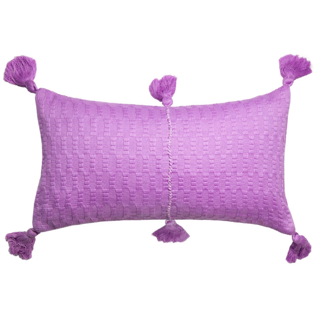 This orchid pillow is inspired by traditional textiles from Almolonga, Guatemala. The cotton used to make this pillow was handwoven by artisans using a back-strap loom.