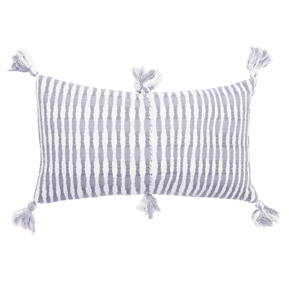 This gray pillow is inspired by traditional textiles from Almolonga, Guatemala. The cotton used to make this pillow was handwoven by artisans using a back-strap loom.