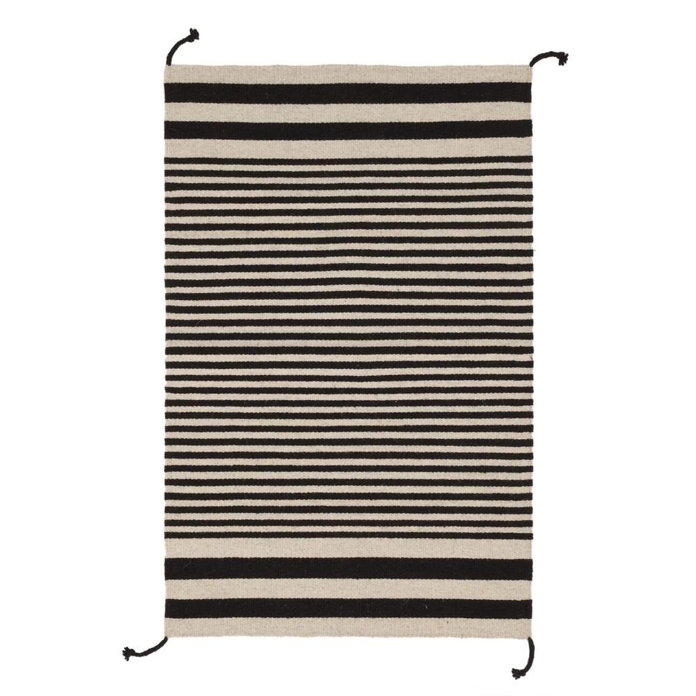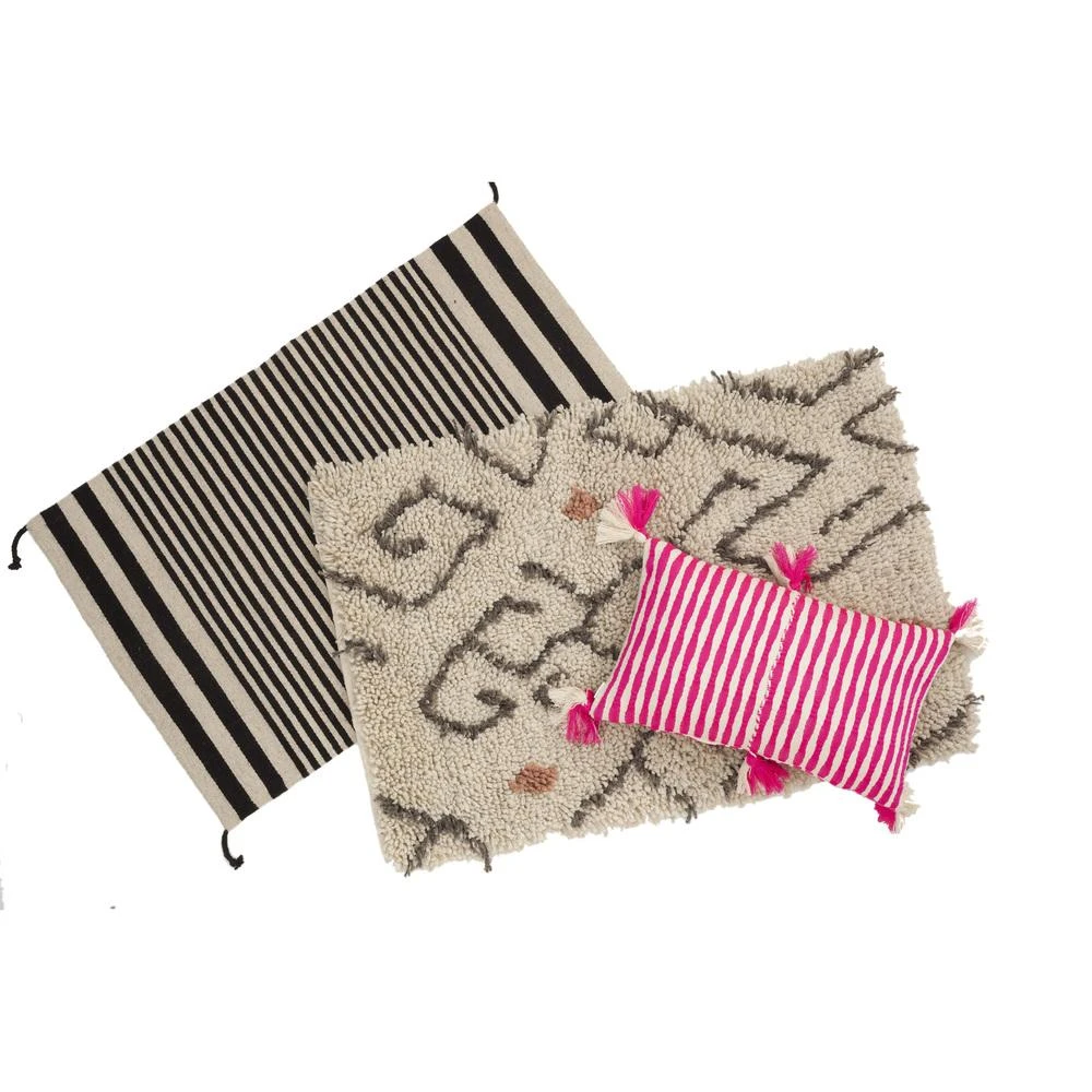 This handwoven rug is a bold graphic statement piece that will pop in any room. Flat woven by artisans in Mexico.