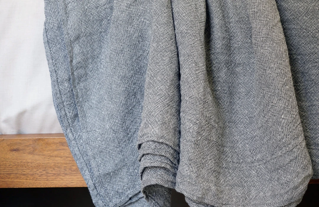 The linen used to make this blanket has been dew retted. This is the most natural way to extract pectins (what is woven into linen) from the flax. It uses the least amount of water of all retting processes and is completely sustainable.