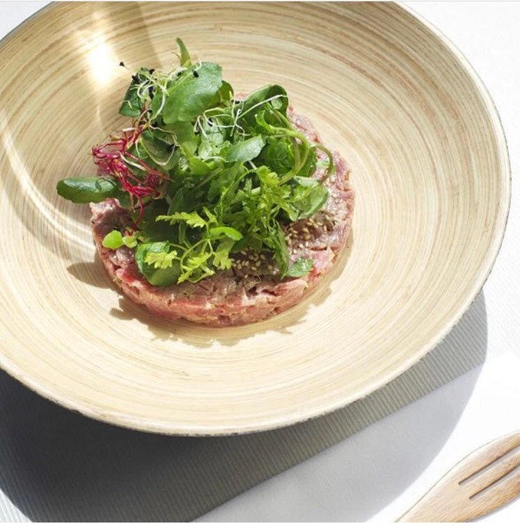 The Dia Bamboo Deep Plate is a small plate with higher sides, making it ideal for clean food presentations as well as everyday meals. Bamboo is insulating and suitable for both hot and cold foods. This clean, classic design will fit in with a range of decor styles, elevating your tablescapes and snack trays.