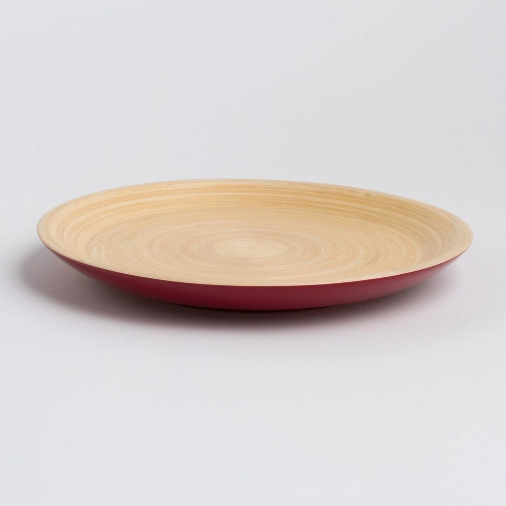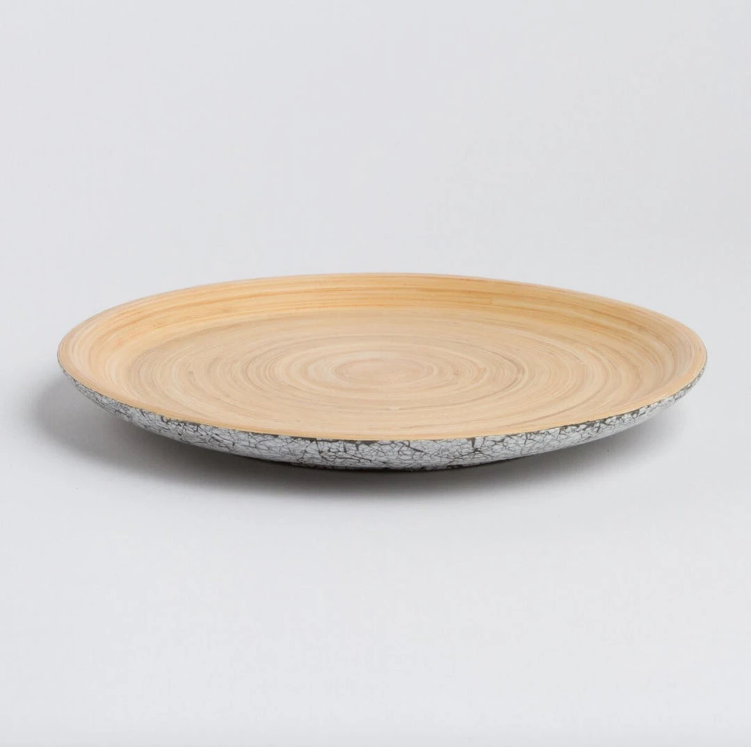 The Bang Bamboo Dinner Plate features a sleek, classic design with the natural look and texture of bamboo. Bamboo is highly durable and creates a unique tablescape for any occasion. Varnishes and paints are food-safe and solvent-free.