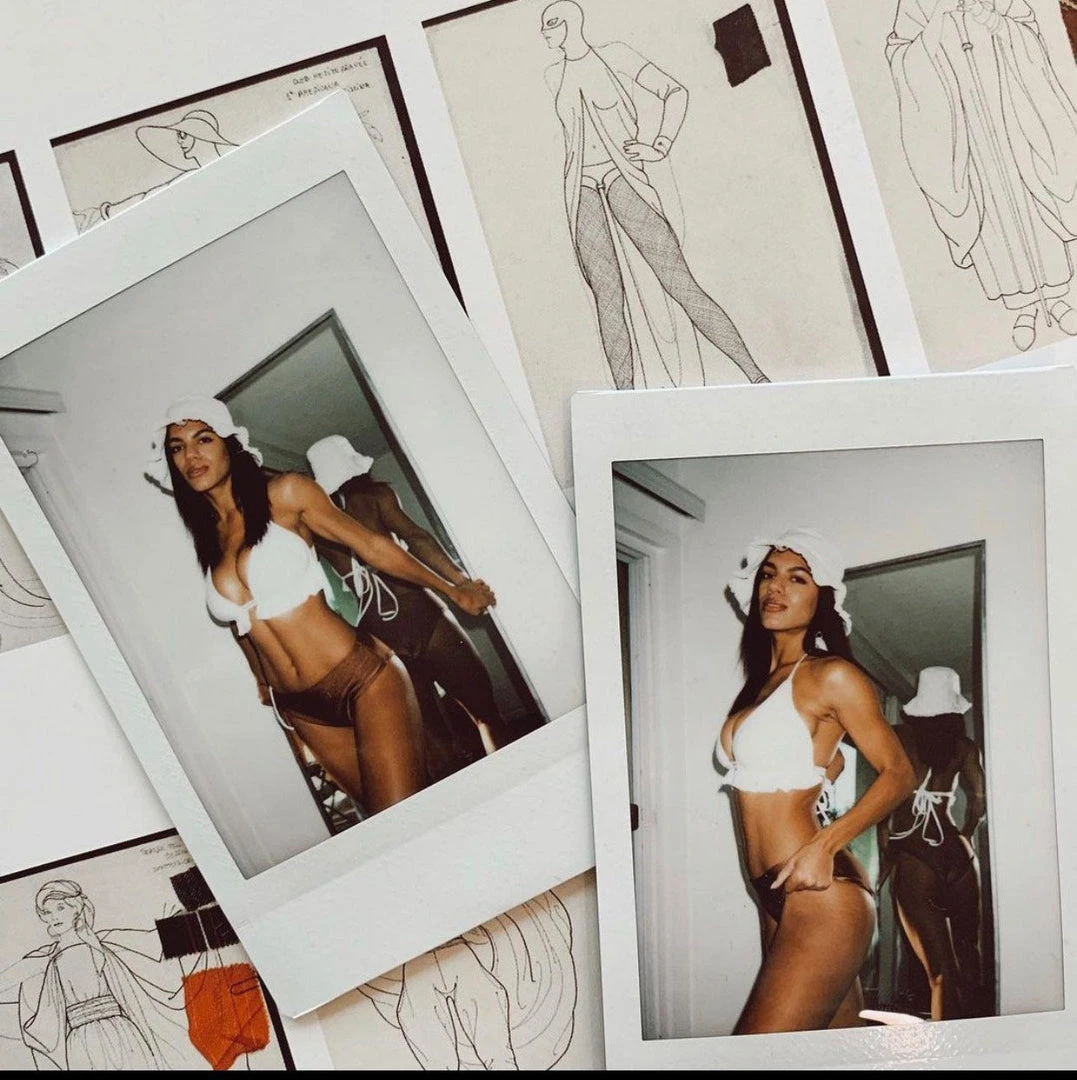 The Ava embossed palm tree bikini top pairs brilliantly with the bronze, self-tie Sofia bottom.