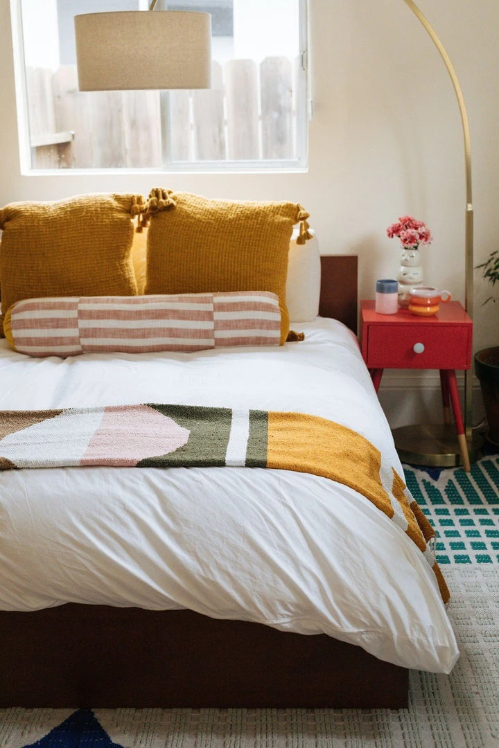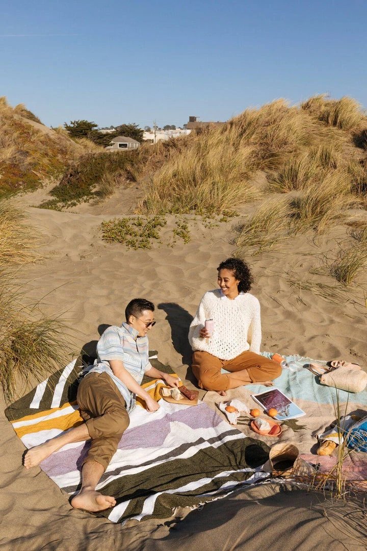 The Luna Collection pays homage to our moon’s constant presence and evolving shapes. Curl up with this cozy blanket on the couch or by the fireplace. This blanket is big enough for a 2-4 person picnic and rolls up in thirds for easy transport. These vibrant, modern blankets are handwoven in Mexico using upcycled yarn from the garment industry.