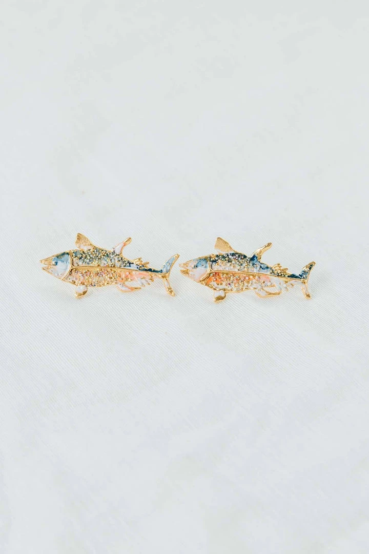These Tuna Fish Earrings are inspired by the colors and textures of the ocean. Throw them on with any outfit to add shine. They’re unique enough to make a statement and subtle enough for everyday wear.