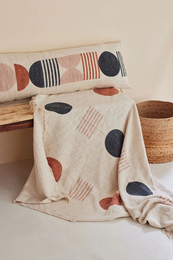 Featuring a color block design and finished with fringes, this throw blanket makes any room look welcoming while adding a subtle pop of style. The handcrafted throw blanket was made with Slub 100% cotton. Throw this color block fringe blanket over a bed, sofa, or armchair — its clean design pairs well with any decor.