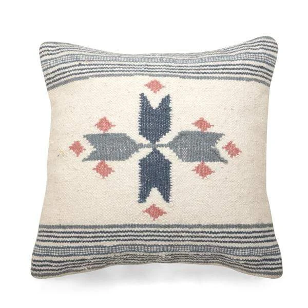 This handwoven throw pillow cover features soft blues and pinks to add subtle color and dimension to your favorite chair, couch, or bed.