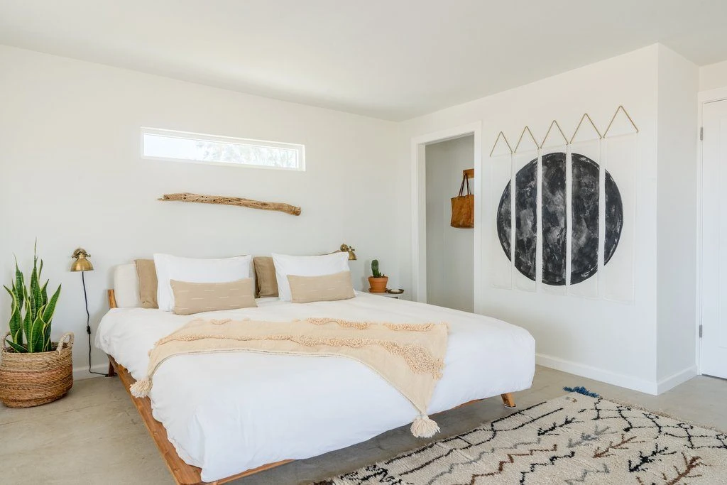 These minimalist, five-panel wall hangings are hand-painted in Los Angeles using carbon black artist’s acrylics and graphite on ivory linen. The raw, solid brass hardware was machined in Los Angeles as well. Each piece is made just for you, making them one of a kind.