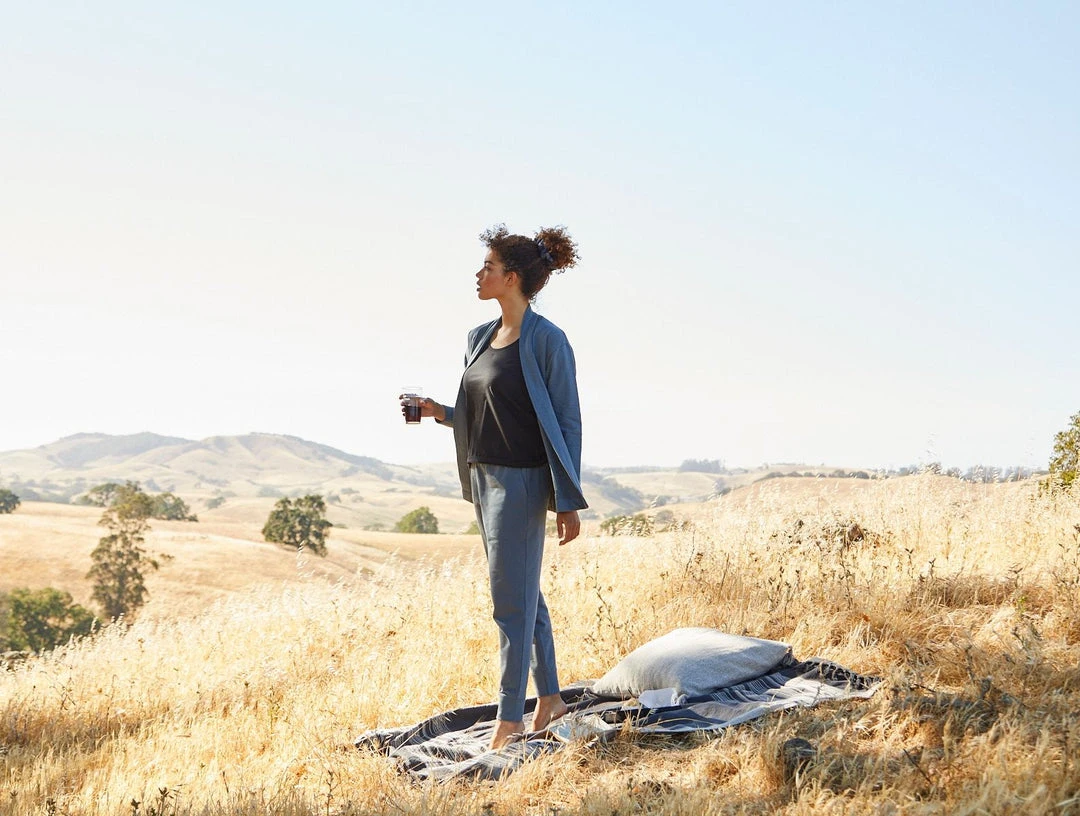 Dillon’s signature French terry fabric is a more substantial loungewear option with lofty softness and comfort. The relaxed, mid-rise fit has channel stitching along the waistband, quarter top pockets in front, and patch pockets in back. 3” ankle cuffs. Complete the look with the Dillon French Terry Cardigan.