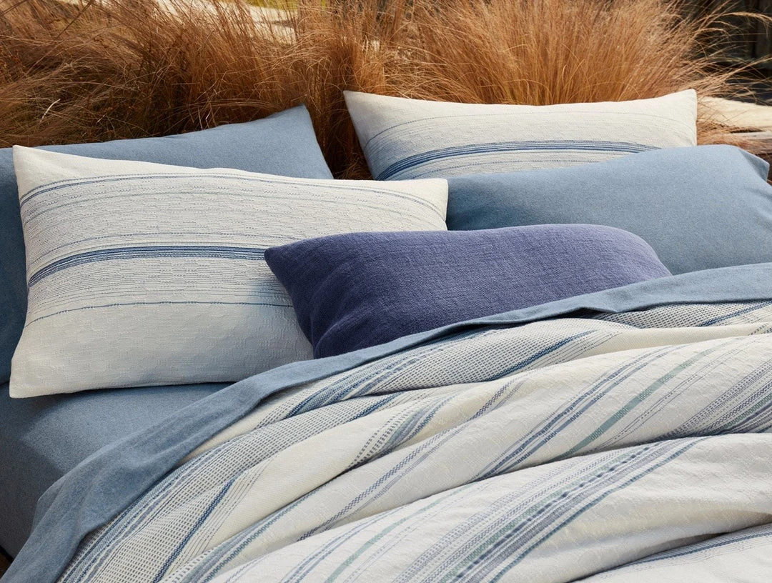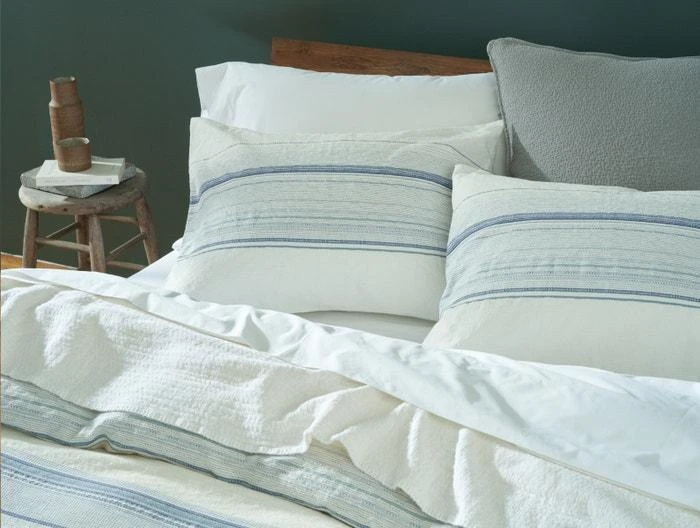 Intricate dobby weaving creates Pacific Grove’s unique combination of variegated stripes and allover honeycomb texture. Yarn-dyed organic cotton ensures the color will stay true wash after wash, and the subtle highs and lows of the weave give it visual interest from every angle.