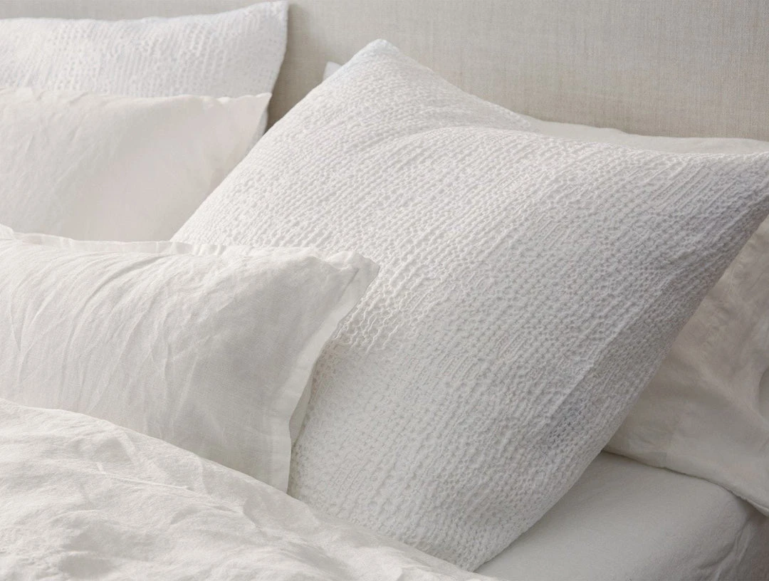 Waffle shams mixing fine and large waffle patterns with unique variations in texture, which provide warmth without weight. Named for the Point Reyes shore whose random rock patterns inspired the multi-waffle weave. Product dyed and washed for softness.