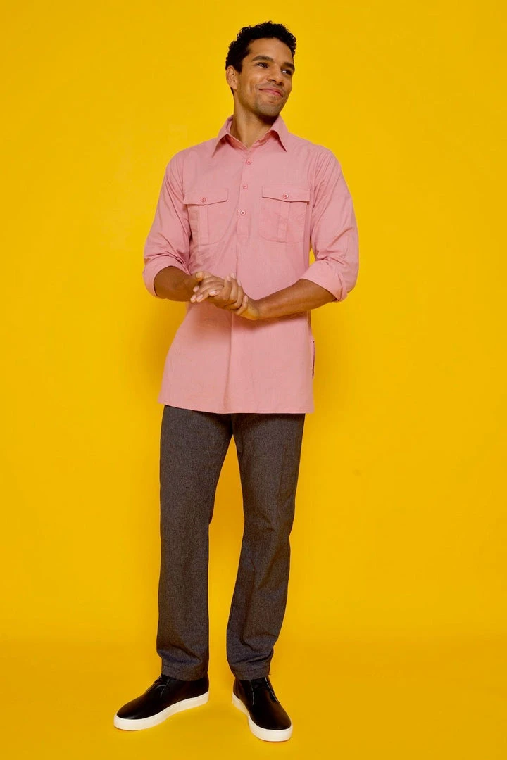 The Kameez is a long, tunic style shirt with military chest pockets for an elevate take on a utility shirt.