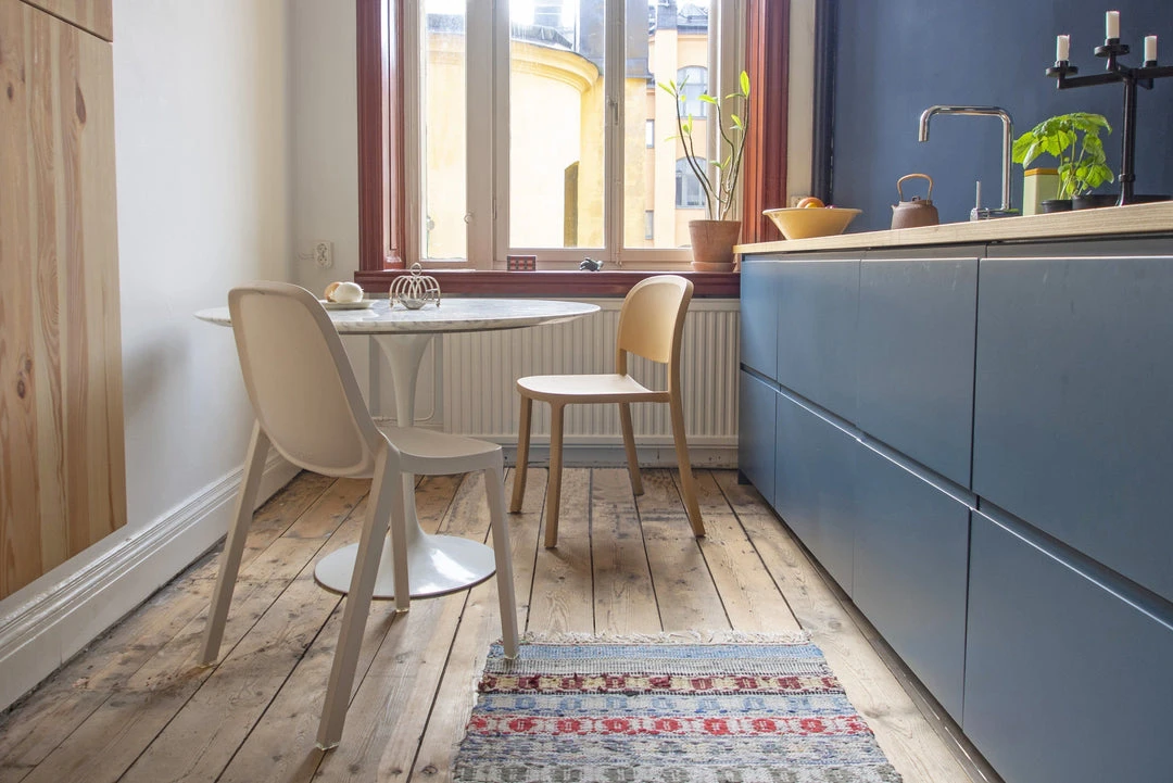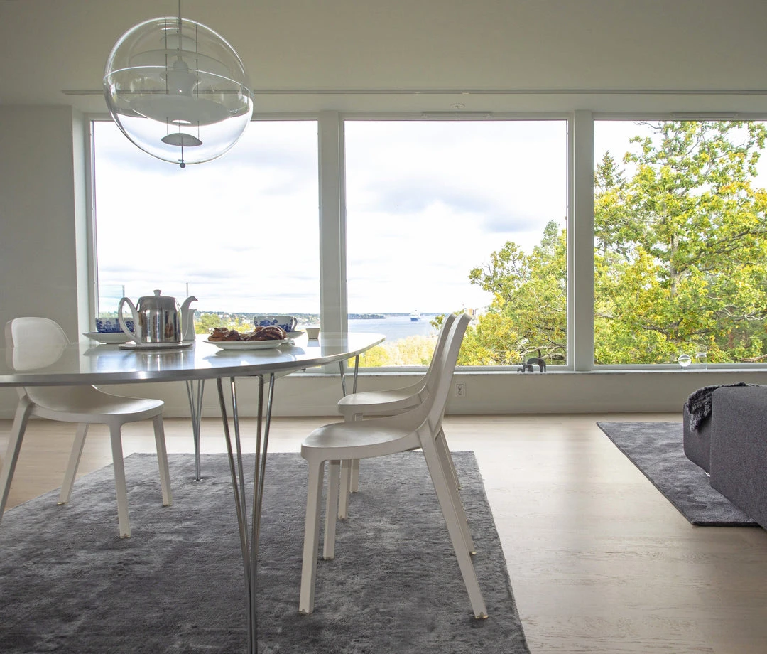 Broom is made from 75% waste polypropylene and 15% reclaimed wood that would normally be swept into the trash. The wood particles create a speckled texture that gives the surface a warmer, more natural touch. Lighter colors show the contrast of wood fibers more. Lifestyle photo from Frank Gehry in Panama.