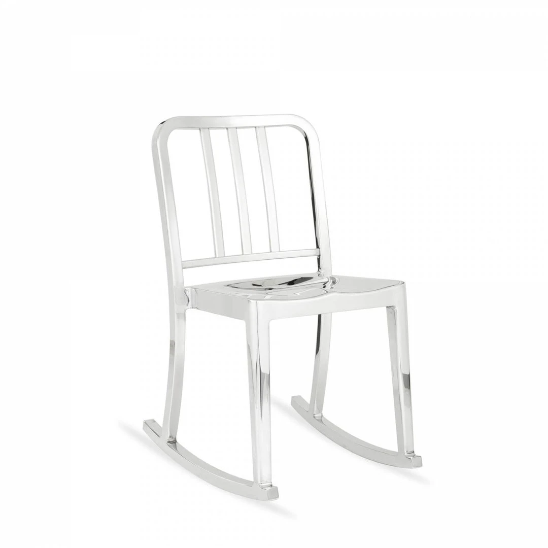 Heritage is a stacking chair designed by Philippe Starck, inspired by the original 1006 Navy.The rocking version was designed for the world famous Bon restaurant in Paris. Intended as a “sit up” chair for working and dining, it’s a symbol of Emeco’s amalgamation of utility and beauty.