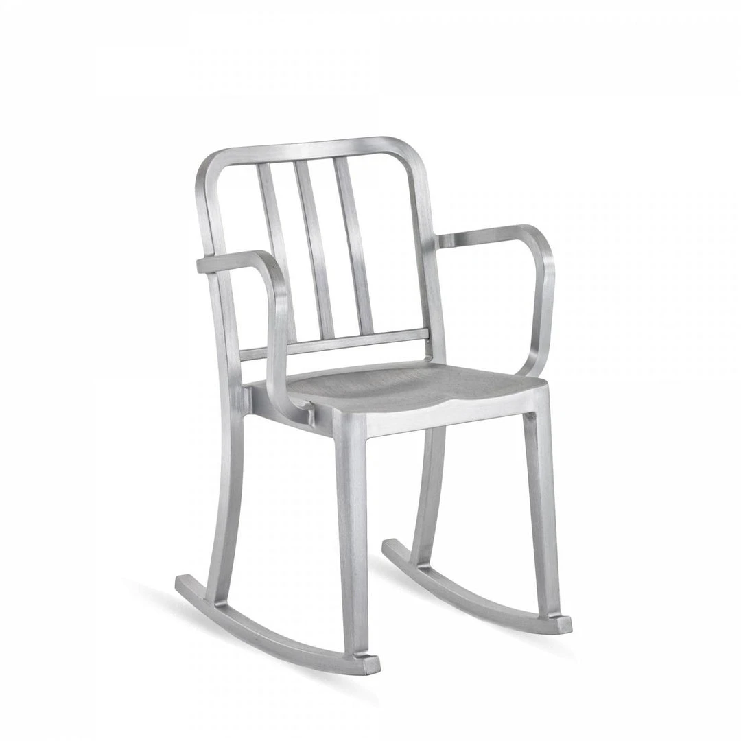 Heritage is a stacking chair designed by Philippe Starck, inspired by the original 1006 Navy.The rocking version was designed for the world famous Bon restaurant in Paris. Intended as a “sit up” chair for working and dining, it’s a symbol of Emeco’s amalgamation of utility and beauty.