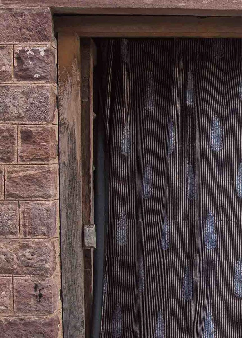 These black, white and light indigo window panels are also printed by hand. Dipped in natural dyes, and printed on a medium weight cotton fabric, these curtain panels make a beautiful statement in a room. They are boarding on opaque, giving plenty of privacy while allowing some light in. Please note that color variance may occur based on the intake of natural dyes per fabric.