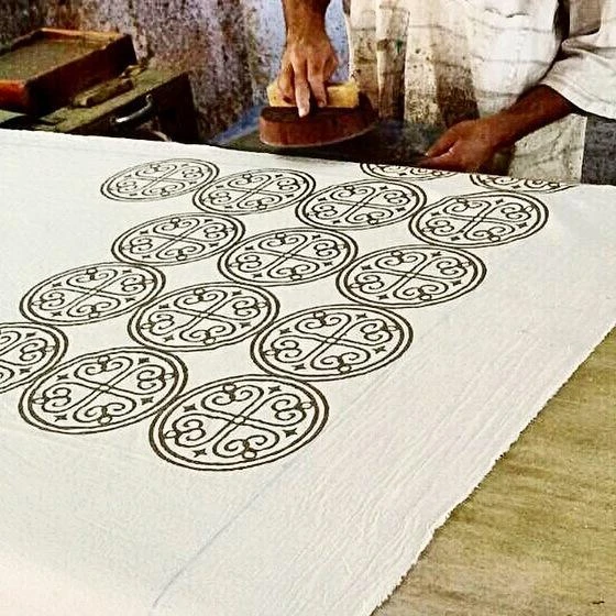 • Hand printed using carved wooden blocks