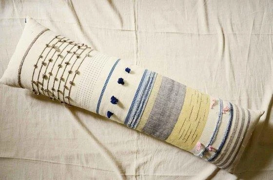 This hygge style long pillow is made with lots of textural details to add a dynamic touch to your sustainable home decor. The fabric is made from organic cotton that is hand spun and woven by artisan weavers on the handloom.