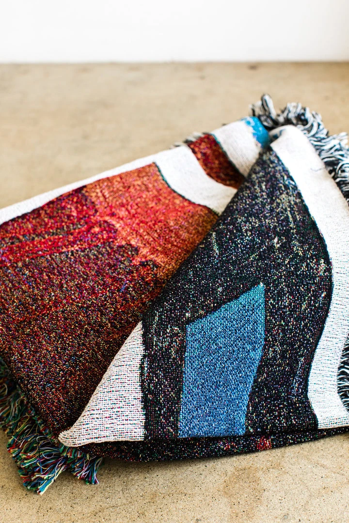 This cozy blanket has a soft and luxurious feel. The Esther Throw’s design is based on an original painting by Los Angeles based artist, K’era Morgan. The heavy Jacquard weave blanket is made to order to reduce waste. Cuddle up with a piece of art.