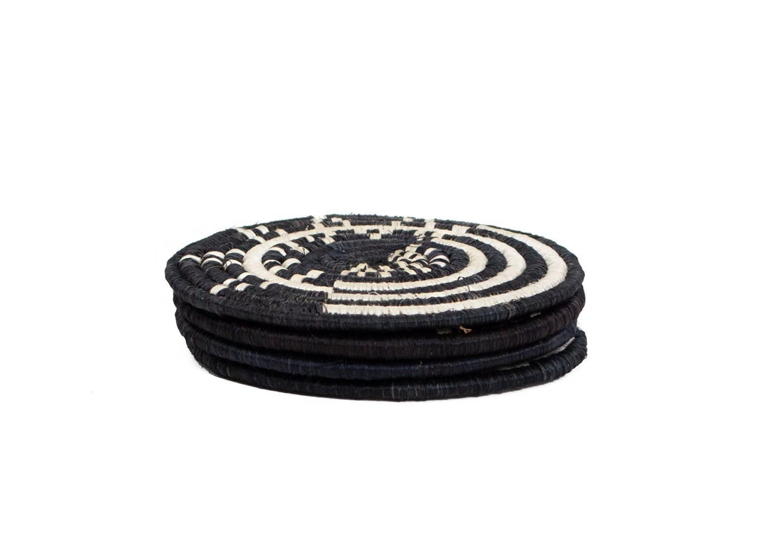 The sunburst pattern on these coasters is known as the “hope” design. Reflected on the Rwandan flag, this sunburst images stands for the county’s collective hope for a new dawn and brighter future. This design means a lot to the weavers Kazi partners with, as each item they sell increases their chances for a better life.