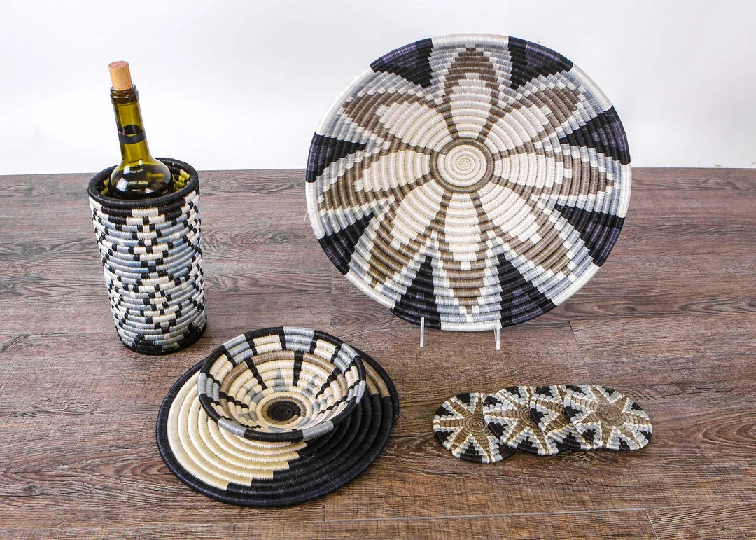 This extra large handwoven basket features a cool-toned star design. It comes ready to hang either on it’s own for a bold statement or with others to create a dynamic basket wall. Its size makes it ideal to store produce on your kitchen counter or toiletries in your bathroom, and its style makes it a stand alone piece for your coffee table or bookshelf.