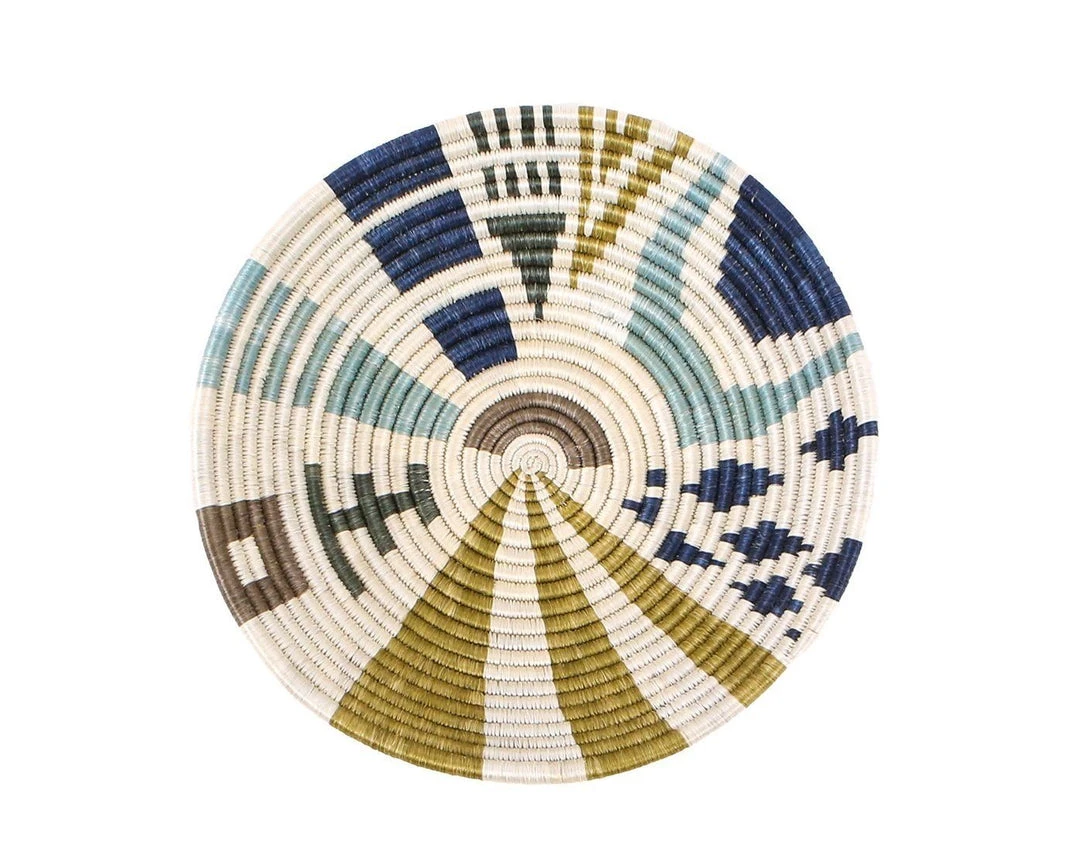 These large-sized handwoven baskets feature pops of blues and golds in various shapes. These functional home decorations can be used and styled in a variety of ways. Try it on a shelf for additional storage in your home office, add it to your coffee table for a natural touch of texture, or use it as a serving bowl for your favorite fruit.