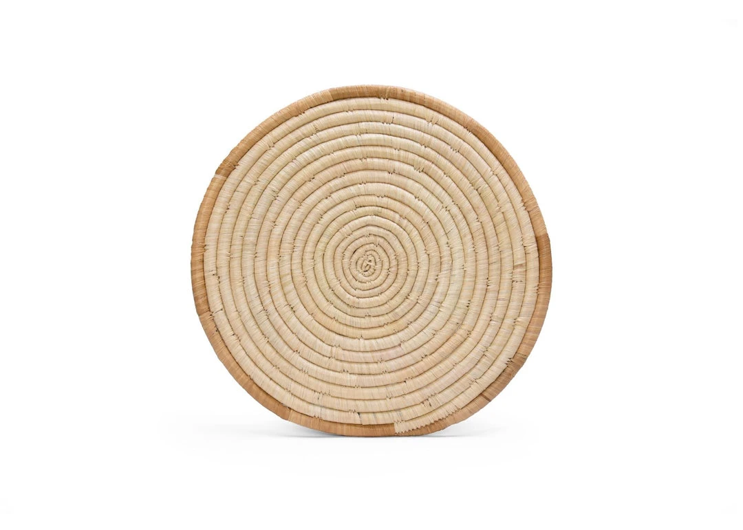 These versatile, textured trivets were made by groups of women in small cooperatives across rural areas of Uganda in an ethical, fair trade environment. They weave together sweetgrass and raffia using a sewing needle to achieve these intricate discs.