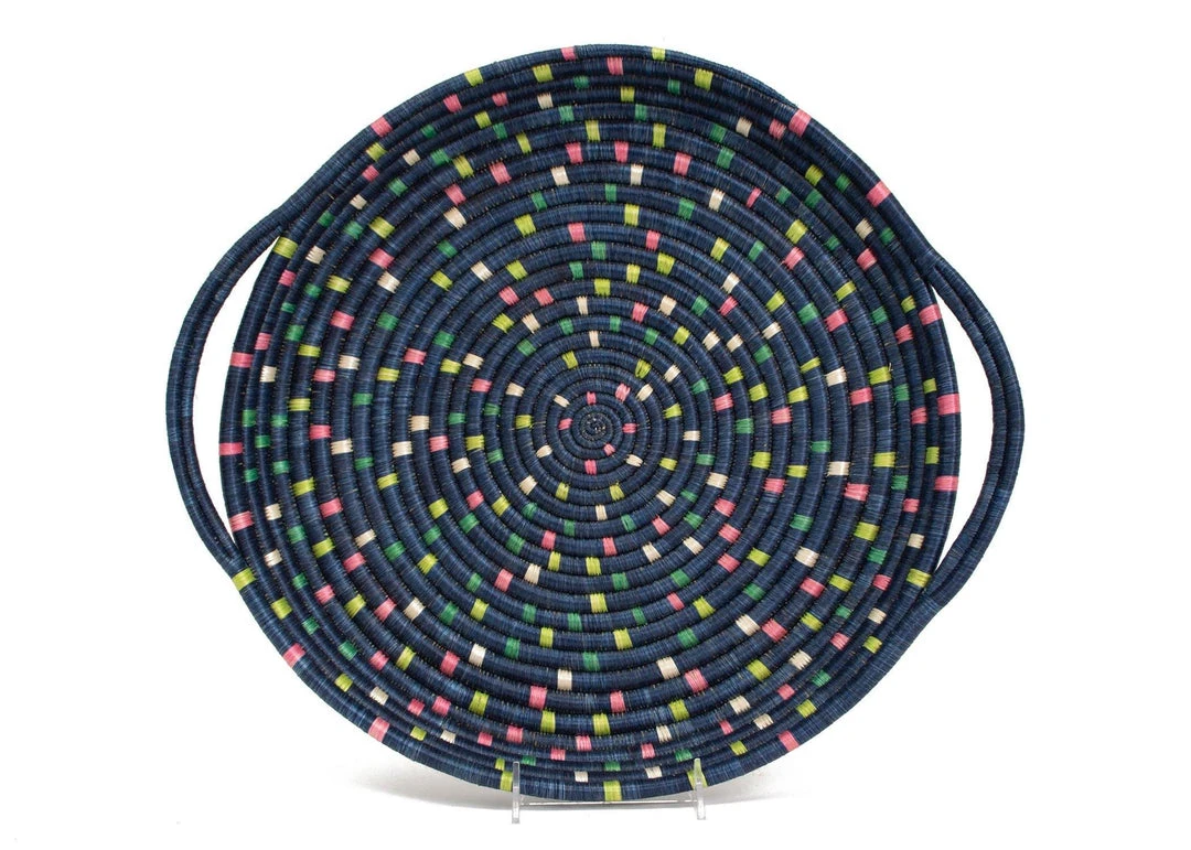 This handwoven plate was made in a fair trade environment and is stunning as a wall decoration or a serving tray. Group several woven pieces together to create a globally inspired look in your home. Crafted by women artisans who use timeless weaving traditions.