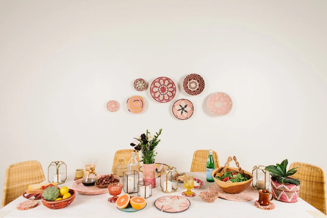 The sunburst pattern on these baskets is known as the “hope” design. Reflected on the Rwandan flag, this sunburst image stands for the county’s collective hope for a new dawn and brighter future. Style it on a shelf for additional storage or add it to your coffee table for a globally inspired feel. This large bowl is just the right size for a fruit bowl, centerpiece, or wall hanging. Handwoven by a cooperative of women located in Rwanda, this one of kind piece takes weeks to complete.