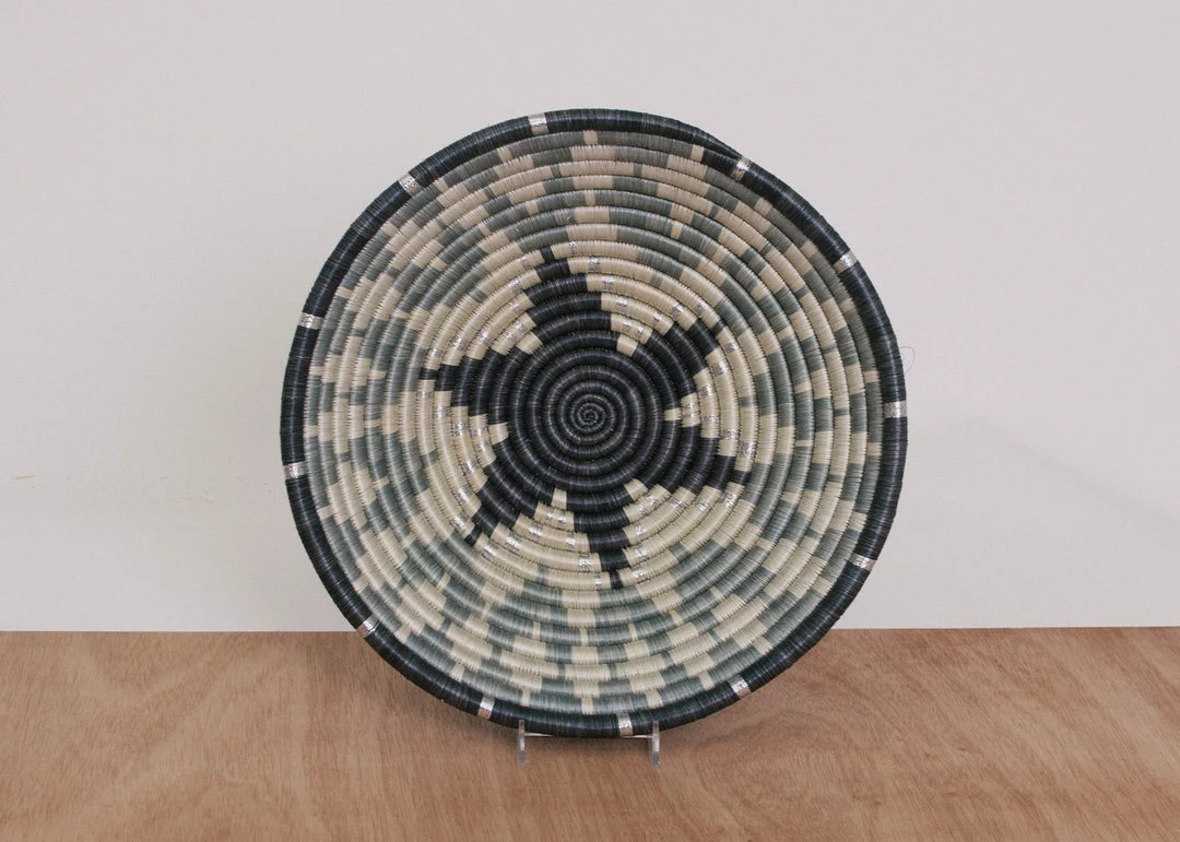 The bold, pointed pattern on the dancer basket conjures the full, sharp movements and brilliant costumes of East African dancers spinning to a drummer’s beat. Both Rwanda and Uganda have traditions of celebrations that involve music and dance.