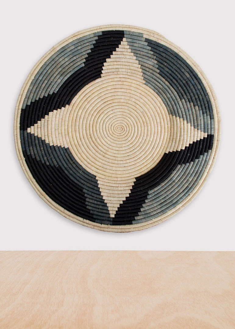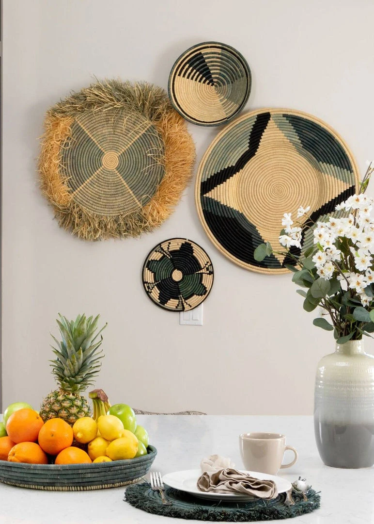 Style it in any room for a globally inspired feel. This beautiful wall plate is the perfect size as a stand alone piece or pair it with plates and trays for the cool color blocked family to create an eye-catching basket wall. All products are made by hand with love and vary slightly in color and size.