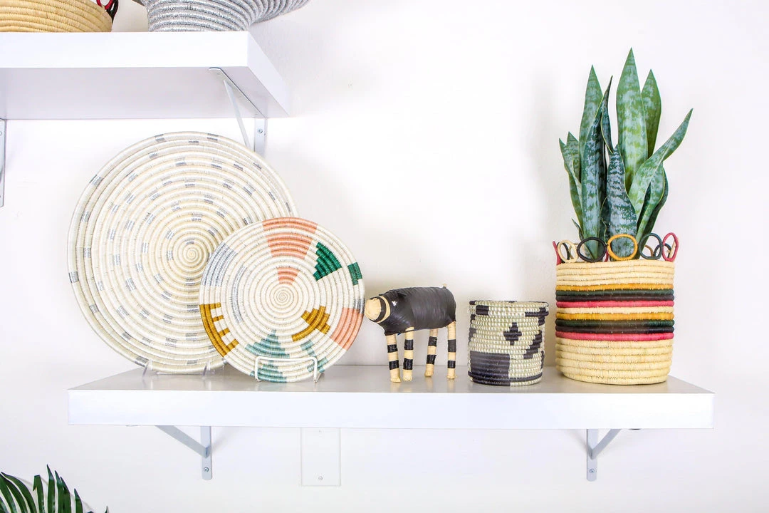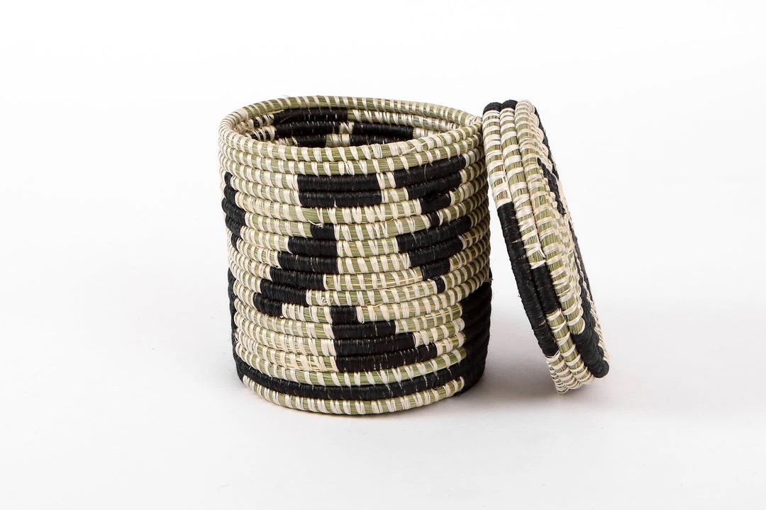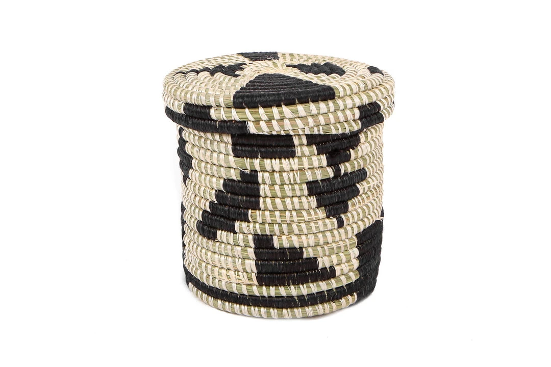 Style this lidded box with geometric shapes anywhere you need additional storage. The lid keeps everything neat and tidy while the handwoven pattern adds texture and movement to your space.