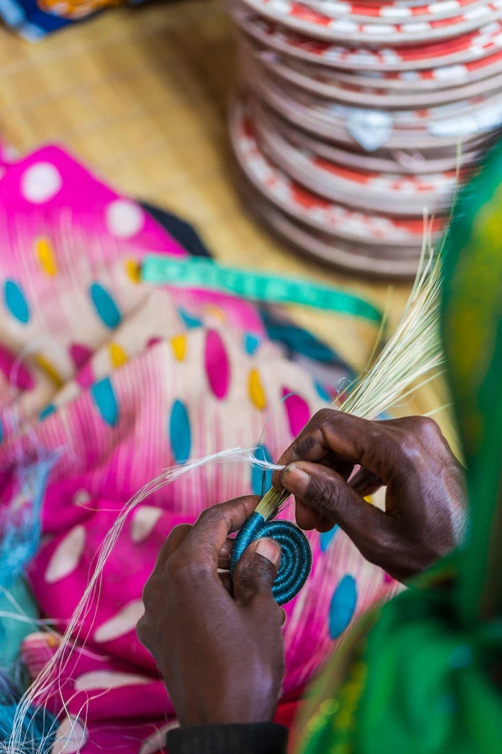 • Handwoven with sisal fiber and sweet grass