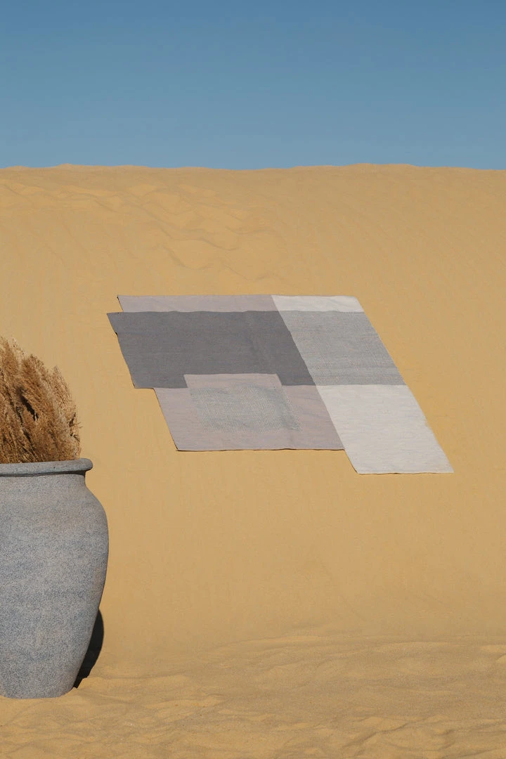 All of Kiliim’s products are handcrafted, which makes each product unique. All cotton in Kiliim products is premium Egyptian cotton sourced from the local markets, and then rolled, spun and dyed in digital dye houses in Cairo. All of the colored wool yarn in their rugs and pillows is spun from upcycled remnants from Cairo carpet factories to make use of fibers that may otherwise be discarded.