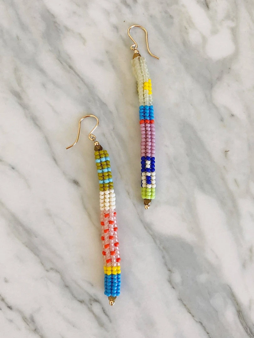 The Cuerda Drops are fun and lightweight earrings with intentionally non-matching patterns. Each pair is handwoven to order using high quality Japanese glass seed beads and gold-filled ear hooks. Variation is to be expected, although the colors and patterns will be similar to what is pictured, no two pieces are the same.
