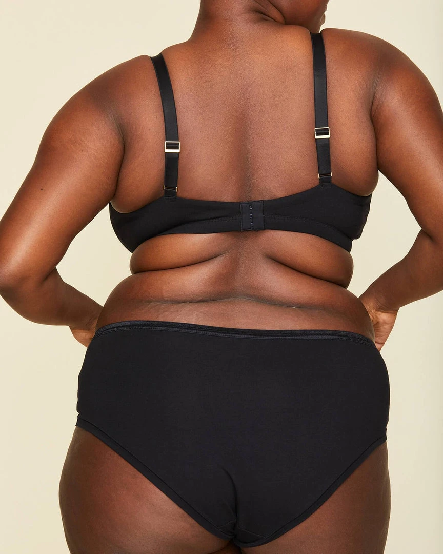 A just-right rise with a full coverage seat, this is the ultimate undie for every body. Designed with you in mind, get ready to don these on the daily. Features a higher middle rise and full coverage, a forgiving waistband that never digs in, and minimal leg elastics for secure placement.