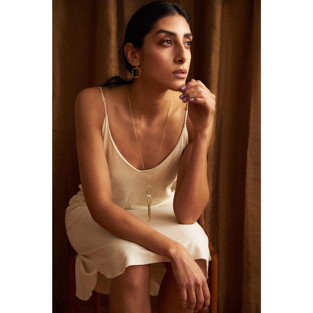 This architectural statement necklace is classic and unique. Easily dressed up for a night out or worn with a t-shirt and jeans to add shine to a casual look.
