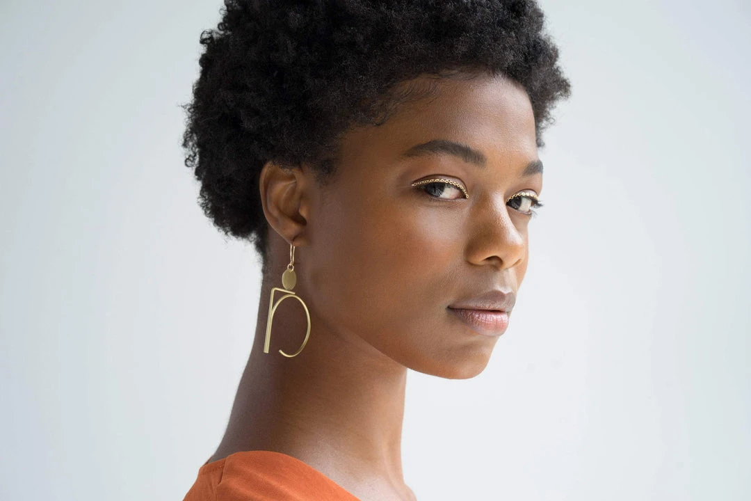 Formed and soldered brass or sterling silver earrings. These geometric statement earrings are simple yet unique. Easily dressed up for a night out or worn with a t-shirt and jeans to add shine to a casual look.