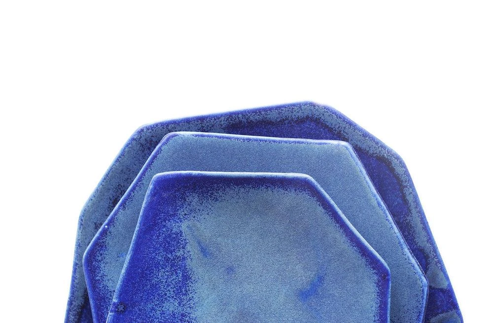 Set your table with these sculptural and highly functional plates. Slipcast in porcelain and fired to cone 6 in an electric kiln. Glazed with handcrafted food-safe glazes.